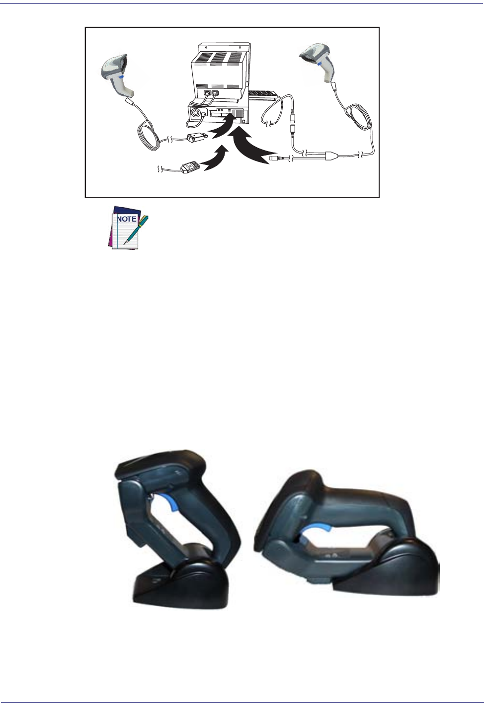 The power supply connects directly to the base (not on the cable's jack) for all configurations.