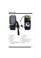 GENERAL VIEW B C I D L K J A N E O Q M F H Q G A) B) C) D) E) F) G) H) Color Display ON/OFF Power Key Receiver LEDs Front Scan Key Keyboard Microphone Telescope Stylus (not included in the box, please order it separately, p/n 94ACC0068) I) J) K) L) M) N) O) P) Q) Laser Safety Label Loudspeaker Color Camera Flash Product Label (under battery) MicroSD Card Slot (under battery) SIM Card Slot (under battery) Reset Key (under battery) Guitar Pick vii