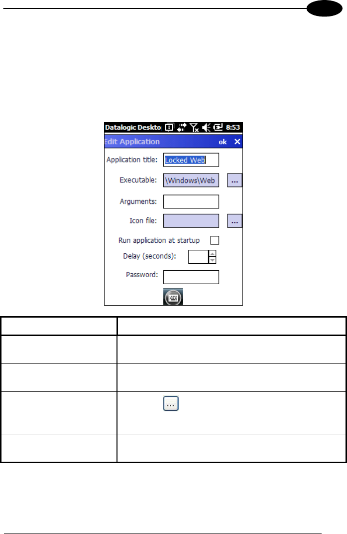 The “Add Application” dialog opens when you tap either “New” or “Edit”. From the