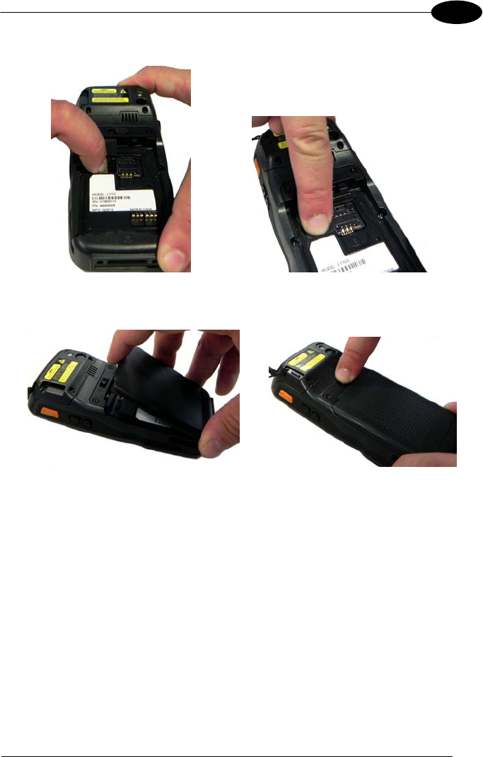 5. First insert the bottom (contacts) and then the upper side of the battery pack into