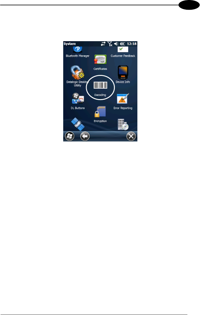 To capture data first of all tap Start > Settings > System > Decoding: