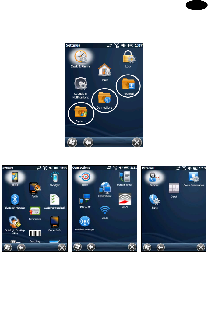 From the Start menu, tap Settings. The settings are organized hierarchically.