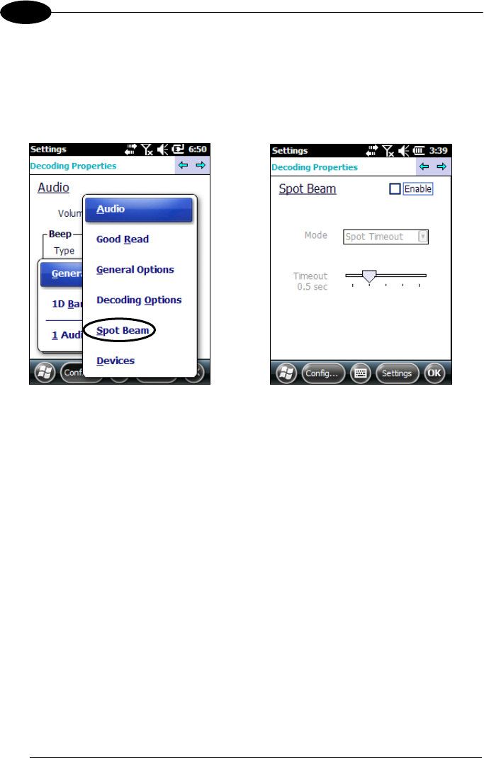 From the Decoding Properties applet, tap Configure > General > Spot Beam. It