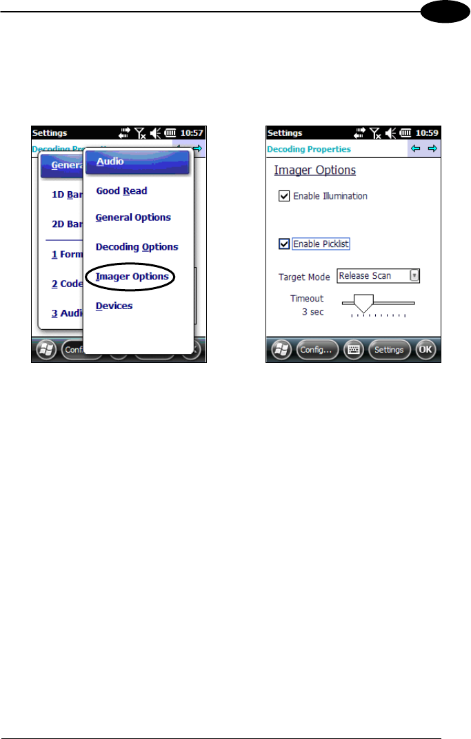 From the Decoding Properties applet, tap Configure > General > Imager Options. It
