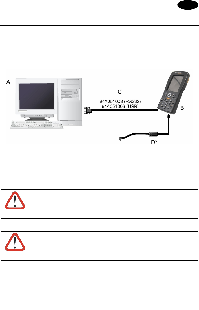 You can use a cable to connect the Datalogic Jet™ PDA to a host computer to