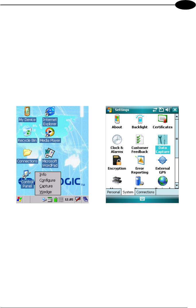From the Windows CE Taskbar, tap the "Data Capture" icon to open a drop–down