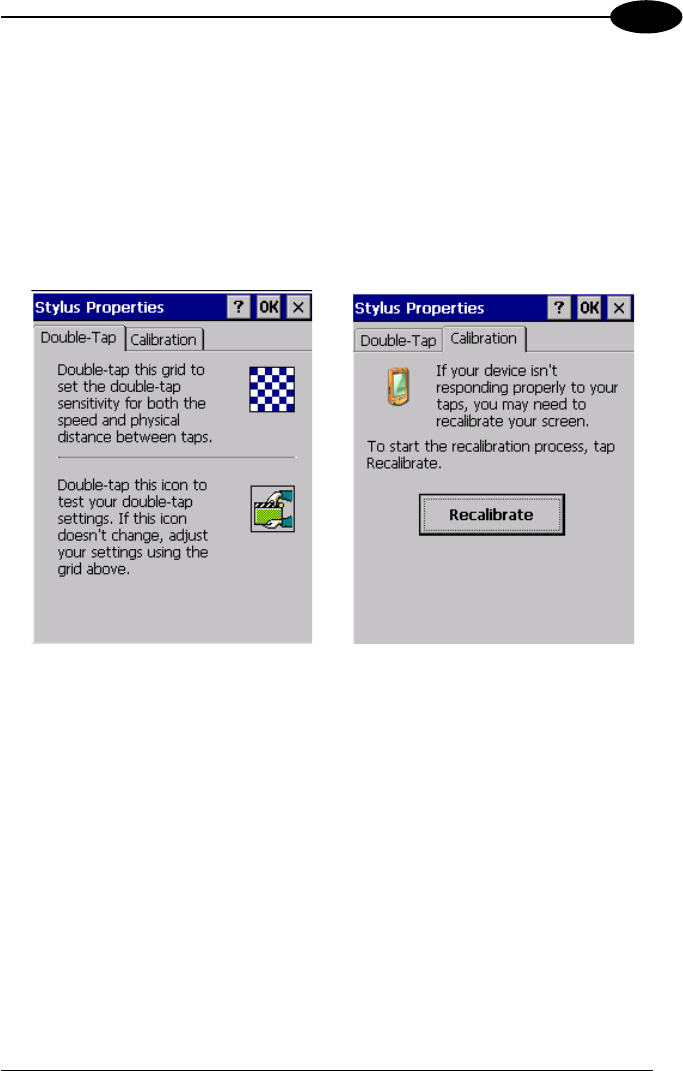 1. Select Start > Settings > Control Panel > Stylus to open the Stylus
