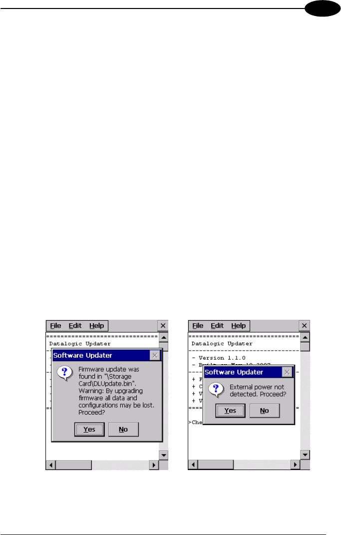 DLUpdater found a firmware update in “\Storage Card\DLUpdate.bin”. It also
