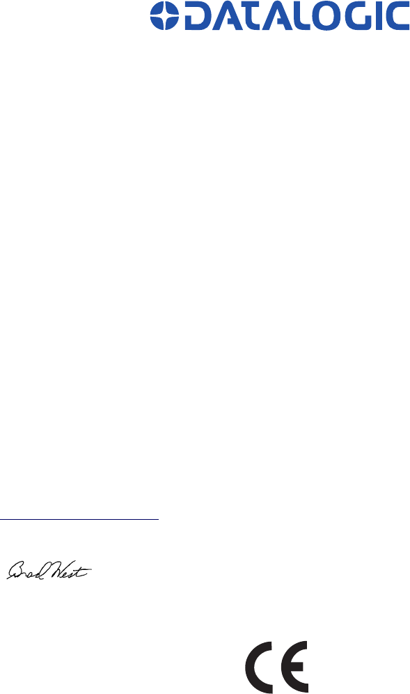 This Declaration of Conformity is issued under the sole responsibility of Datalogic ADC, Inc. and hereby