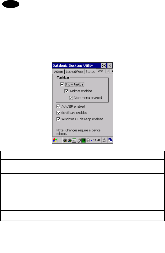 Taskbar Enabled Select/tap “Taskbar Enabled” to specify whether th