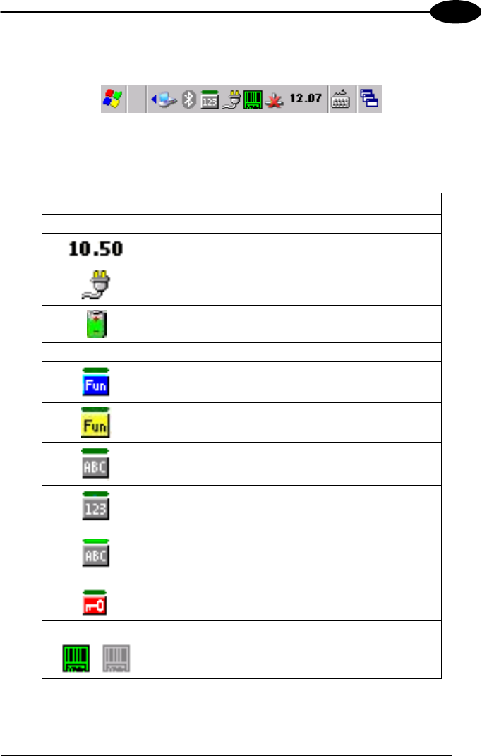 The Taskbar provides information about the time, the battery level, the keyboard