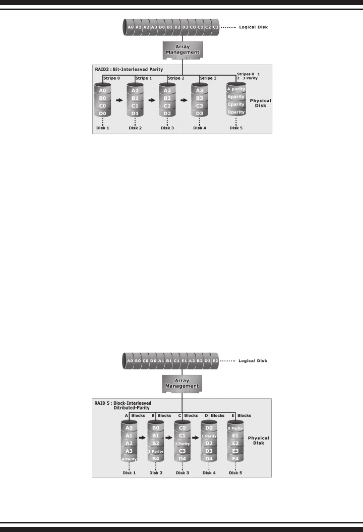 relieves the write bottleneck that characterizes RAID 4, and is the