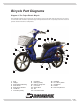 Bicycle Part Diagrams Diagram 1: The Tokyo Electric Bicycle This diagram illustrates the various parts of your bicycle. Please note that many of these parts are not user-serviceable and should be repaired only by trained professionals. This is especially true of the electrical systems and the mechanical components. 17 1 16 9 7 19 2 10 15 14 11 3 12 4 5 6 18 8 13 1. 2. 3. 4. 5. 6. 7. Seat Taillight Rear Mudguard/Fairing Rear Wheel Rear Shock Absorber Hub Motor Controller (inside) 8. 9. 10.