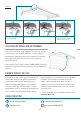 Figure 3. 1. Thread line through tensioner and pull tight. 2. Loop line around tensioner knob 2-3 times. 3. L ock line into clip and trim excess leaving approximately 50mm (2in). OPERATING YOUR CLOTHESLINE 2 This clothesline uses a Lift & Lock mechanism. To raise the clothesline, hold the FRONT BAR with hands spaced evenly. Lift above the horizontal (1) and push towards the wall (2). Release your grip and the clothesline will be locked into place.
