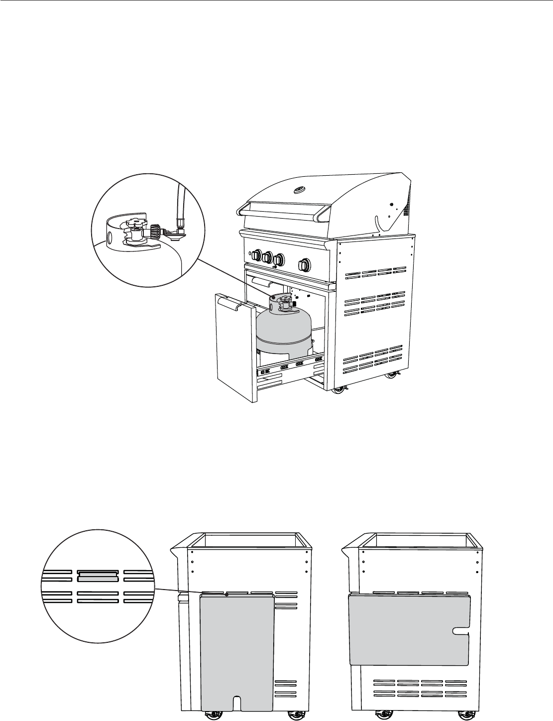 Attach LP gas line connector hose assembly (as shown in “LP Gas Hook-up” section - The