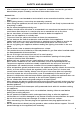 SAFETY AND WARNINGS ! WARNING! Explosion Hazard Failure to follow this advice may result in injury or death • If you smell gas, do not use the appliance. • Do not use water on grease fires, a violent steam explosion may result. Turn all burners off, then smother fire or flame or use dry chemical or foam-type extinguisher. • Do not heat unopened food containers such as cans – build up of pressure may cause container to burst and result in injury.