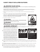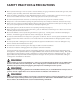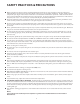 SAFETY PRACTICES & PRECAUTIONS n After a period of storage or non-use (such as over the winter), the gas grill should be checked for gas leaks, dete- rioration, proper assembly, and burner obstructions before using. n Never let clothing, pot holders or other flammable materials come in contact with or get too close to any grate, burner or hot surface until it has cooled. Fabric may ignite and result in personal injury.