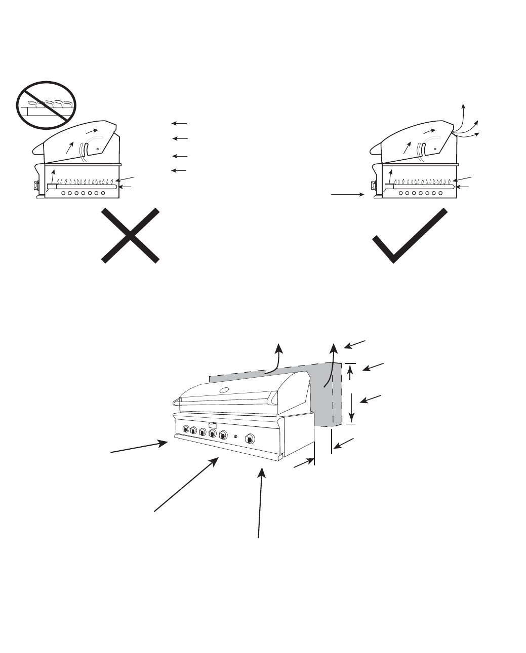 ing in the back of the grill, with a minimum clearance of 3” (7,6 cm) (for non-combustibles) or 18” (45,7cm)