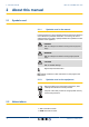 BSL 150...400 BESL 200...400 2. About this manual 2 About this manual 2.1 Symbols used 2.1.1. Symbols used in the manual In these instructions, various danger levels are employed to draw the user’s attention to particular information. In so doing, we wish to safeguard the user’s safety, highlight hazards and guarantee correct operation of the appliance. DANGER Risk of a dangerous situation causing serious physical injury. WARNING Risk of a dangerous situation causing slight physical injury.