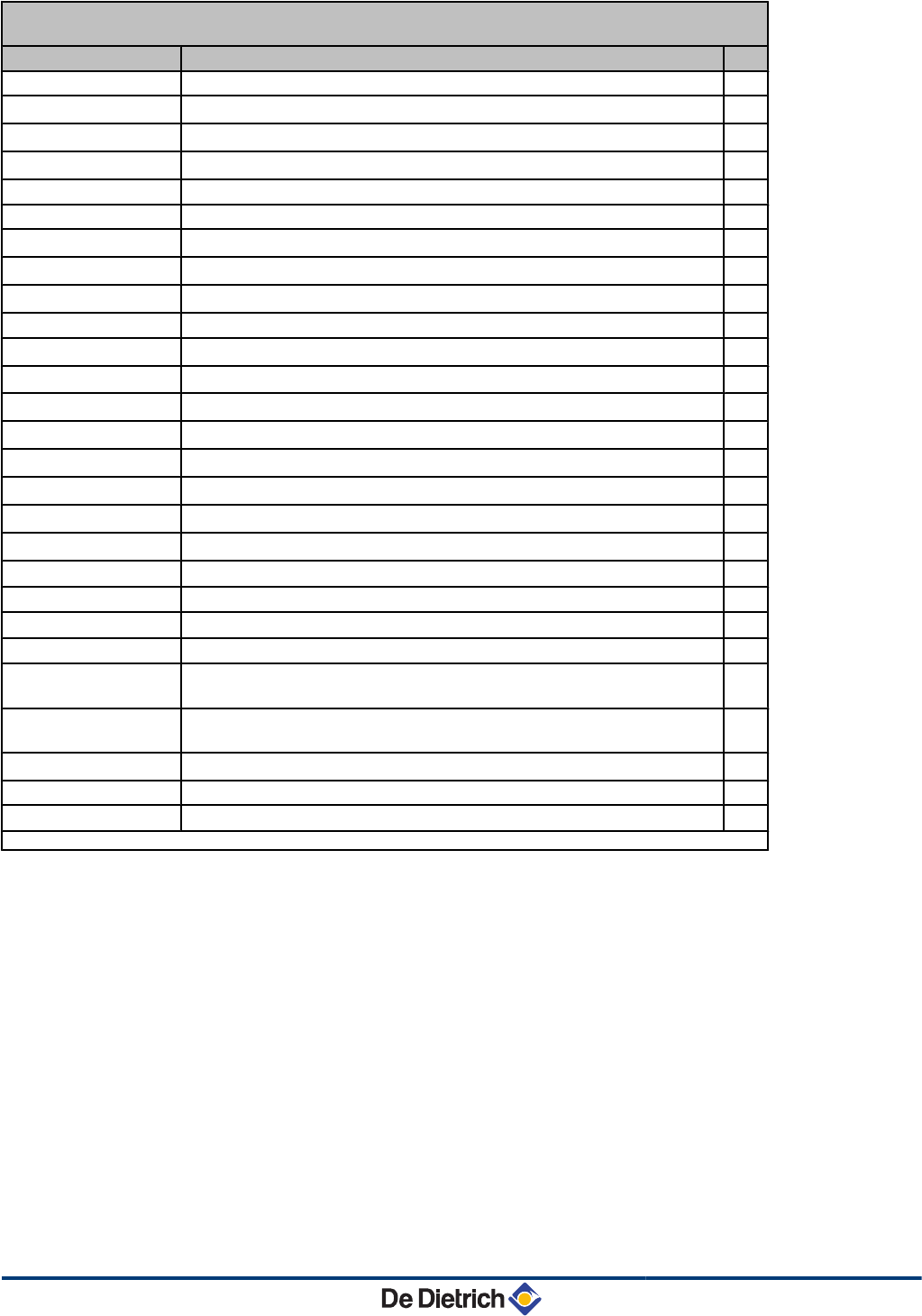(1) The parameter is only displayed for the options, circuits or sensors actually connected.