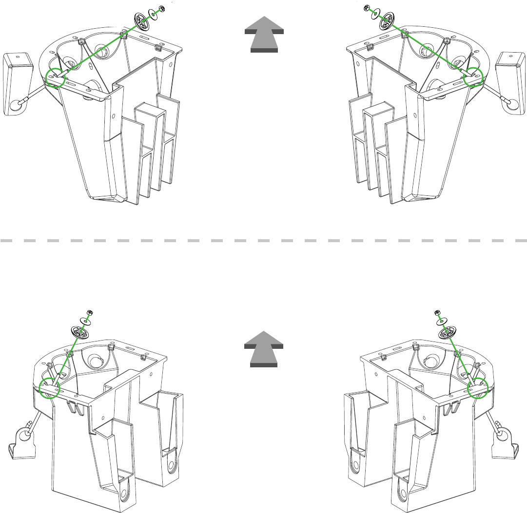 Assemble with black spherical washer, flat washer and nut; BAG J7. IMPORTANT: Leave all J-hook nuts LOOSE!