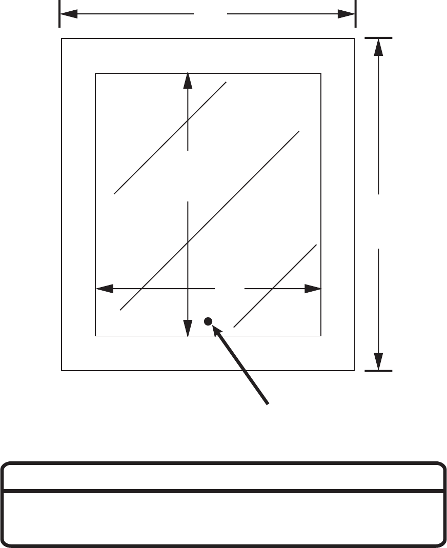Frosted Rectangle LED Mirror A 26” D 26 ” B 32” C 20 ” On/Off Touch Switch Model # A B C D 2026 26 ” 66 cm 32 ” 81 cm 20 ” 51 cm 26 ” 66 cm