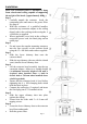 Operation • • • • • • • • Select the fan speed you require. Push button ‘3’ for high extraction level. Push button ‘2’ for medium. Push button ‘1’ for low. The fan indicator light will glow when the fan is operating. To switch the fan off, push the fan speed OFF button ‘0’. If required, you may illuminate the cooking area by switching the hood lights on. Leave the hood running for a short period after the cooking has been completed to clear any smoke and odours.