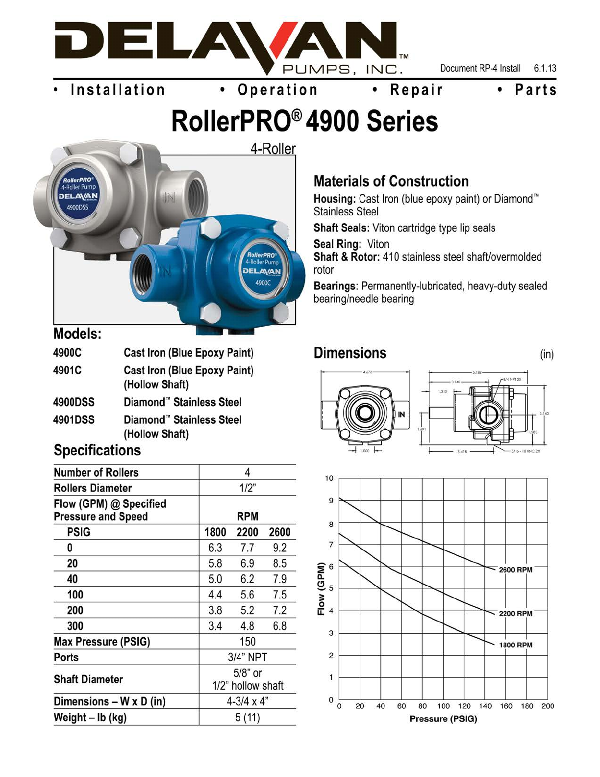 Cast Iron 4-Roller Pump — 9.2 GPM, 150 PSI, 2,600 RPM