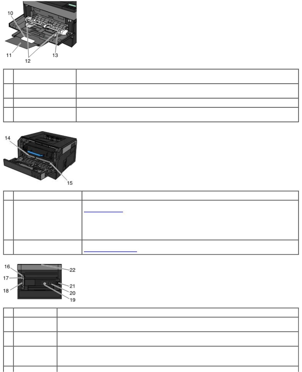 12 Guide della larghezza Guide per la stampa di supporti caricati nell'alimentatore multiuso.