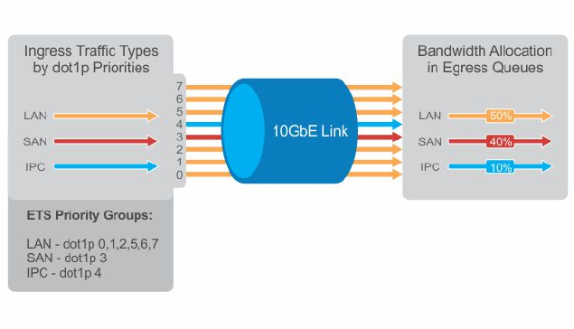 FCoE, or iSCSI traffic classes that require different bandwidth, latency, and best-effort treatment during network congestion.