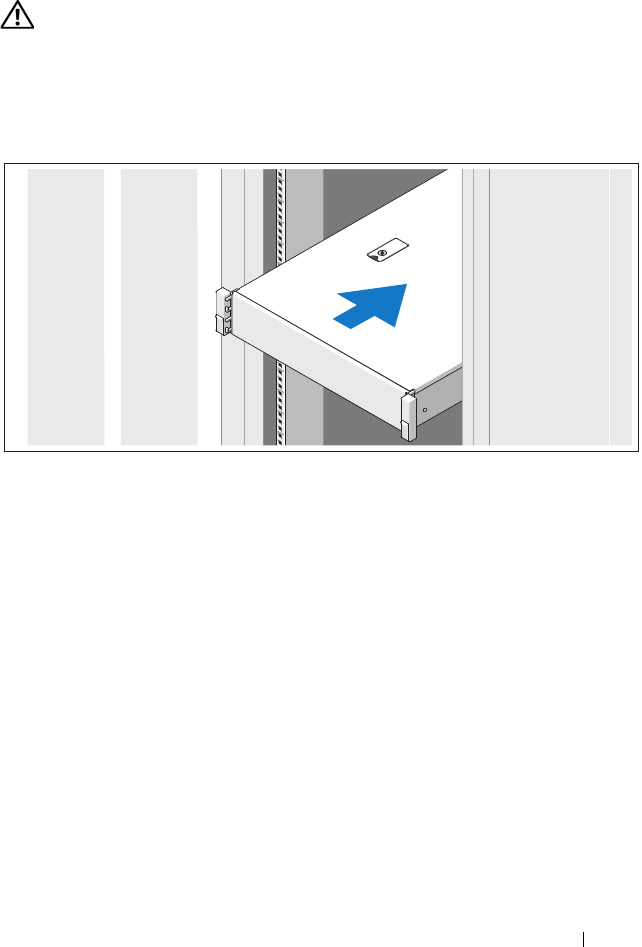 Monte los rieles e instale el sistema en el estante siguiendo las instrucciones