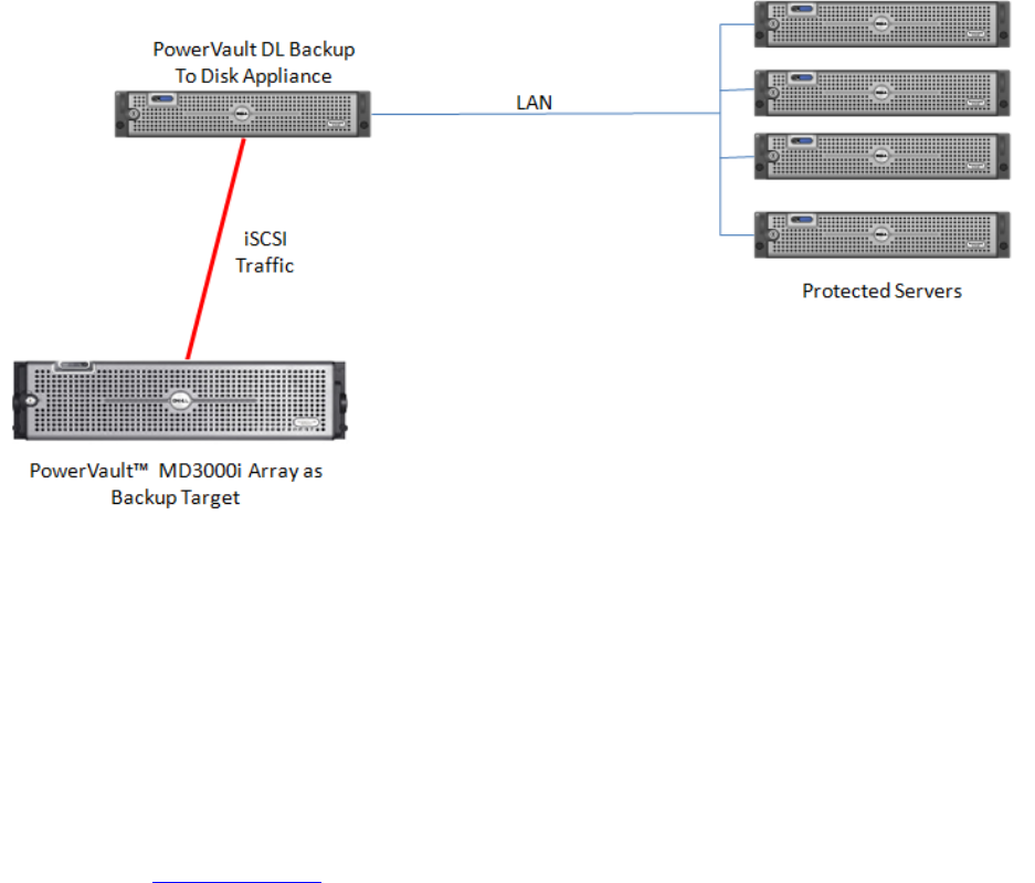 NOTE:  If one or more protected servers and the DL Backup to Disk  Appliance  share a PowerVault