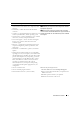 指示燈顯示方式 問題說明 建議的解決方案 主機板發生故障。 請與 Dell 公司聯絡以尋求技術援助。 偵測到記憶體模組,但存在記憶體組 態或相容性錯誤。 • 請確定記憶體模組 / 記憶體連接器沒 有特殊的安裝要求。 • 確認您要安裝的記憶體模組與電腦 相容。 • 重新安裝記憶體模組,然後重新啟 動電腦。 • 如果問題仍然存在,請與 Dell 公司 聯絡。 常規系統活動先於影像起始作業執行。 注意您的顯示器是否有螢幕訊息。 擴充卡可能發生故障。 1 卸下插卡 ( 不是圖形卡 ),然後重新 啟動電腦,以確定是否存在衝突。 2 如果問題仍然存在,請重新安裝卸 下的插卡,並卸下另一個插卡,然 後重新啟動電腦。 3 對每一個插卡重複此程序。如果電 腦正常啟動,則表明從電腦卸下的 最後一個插卡是衝突來源,請排除 故障 ( 請參閱第 69 頁的 「解決軟體 和硬體不相容問題」 )。 4 如果問題仍然存在,請與 Dell 公司 聯絡。 常規系統活動先於影像起始作業執行。 注意您的顯示器是否有螢幕訊息。 執行 POST 後,電腦處於正常的作業 狀態。 註:診斷指示燈短暫地閃爍;它們在 電腦成功啟動至作業