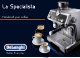 Setting La Specialista to be ready for first use Wash & dry accessories. Insert the coffee bean container and turn until it clicks. Insert the drip tray with cup grill. Fill the water tank. Plug in the machine and switch on the main power. 10sec Place a container under the outlets. Press to rinse. Attach the filter holder. Press to rinse. Open the steam dial. Select your beverage and you are ready to start making coffee.