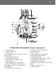 8: Control Panel Description: 1. On / Off Button Description: Turns the machine on and off. 2. 1-Cup Button Description: When pressed the machine will only delivery 1 cup of espresso / coffee. When illuminated, shows that you selected the 1-cup option by pressing the 1-Cup Button. 3. 2-Cup Button Description: When pressed the machine will only delivery 2 cups of espresso / coffee. When illuminated, show that you selected the 2-cup option by pressing the 2-Cup Button. 4.
