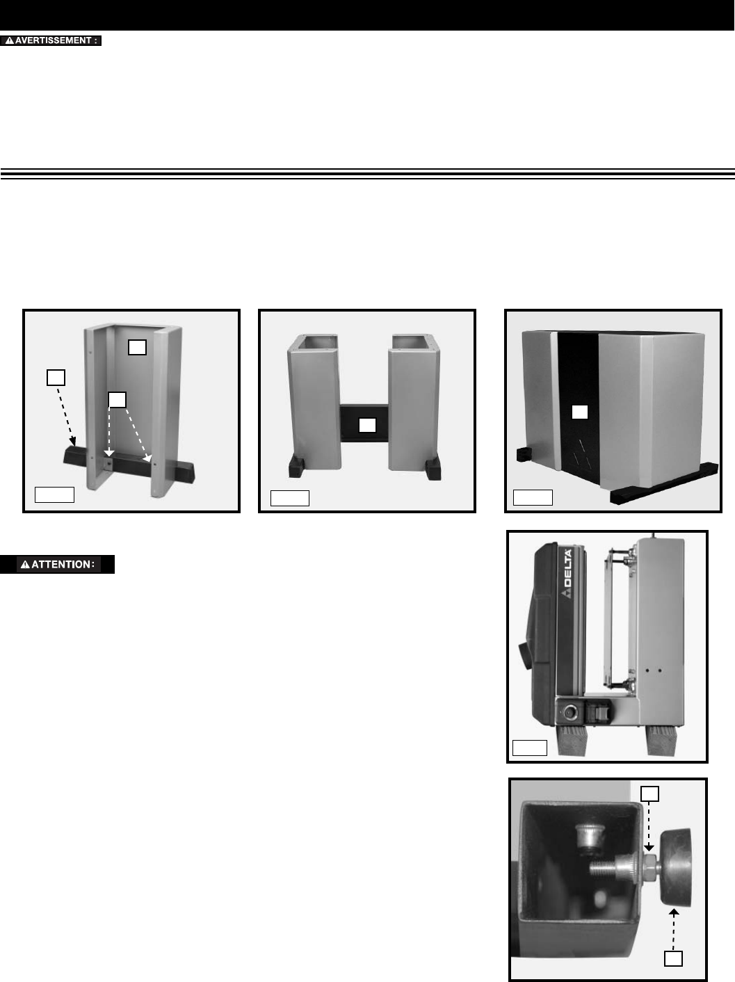 2. Positionner l’avant du socle (grand panneau noir (E) fig.