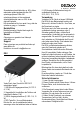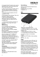 A NORDIC BRAND bateriją nuo ekstremalių temperatūrų – karščio ir šalčio. Po 300 krovimo ciklų išorinė baterija išlaiko apie 80 % maksimalios talpos. Po 600 krovimo ciklų baterijos įkrovimo talpa sumažės iki 50 % pradinės talpos. Jei išorinės baterijos nenaudojate, įkraukite ją maždaug kas 6 mėnesius. Šalinimas Šalinkite atsakingai, laikykitės vietinio akumuliatorių šalinimo reglamentavimo. Garantija Norėdami sužinoti apie teikiamas garantijas, apsilankykite svetainėje www.deltaco.eu.