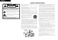 ENGLISH SAFETY INSTRUCTIONS ¢SAFETY PRECAUTIONS CAUTION RISK OF ELECTRIC SHOCK DO NOT OPEN CAUTION: TO REDUCE THE RISK OF ELECTRIC SHOCK, DO NOT REMOVE COVER (OR BACK). NO USER-SERVICEABLE PARTS INSIDE. REFER SERVICING TO QUALIFIED SERVICE PERSONNEL.