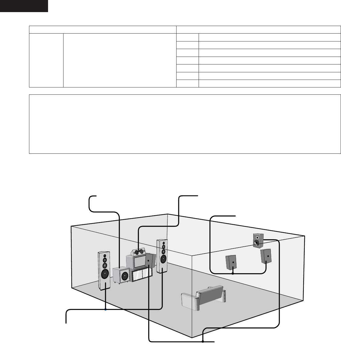 • The following is an example of the basic layout for a system consisting of 8 speaker systems and a television monitor: