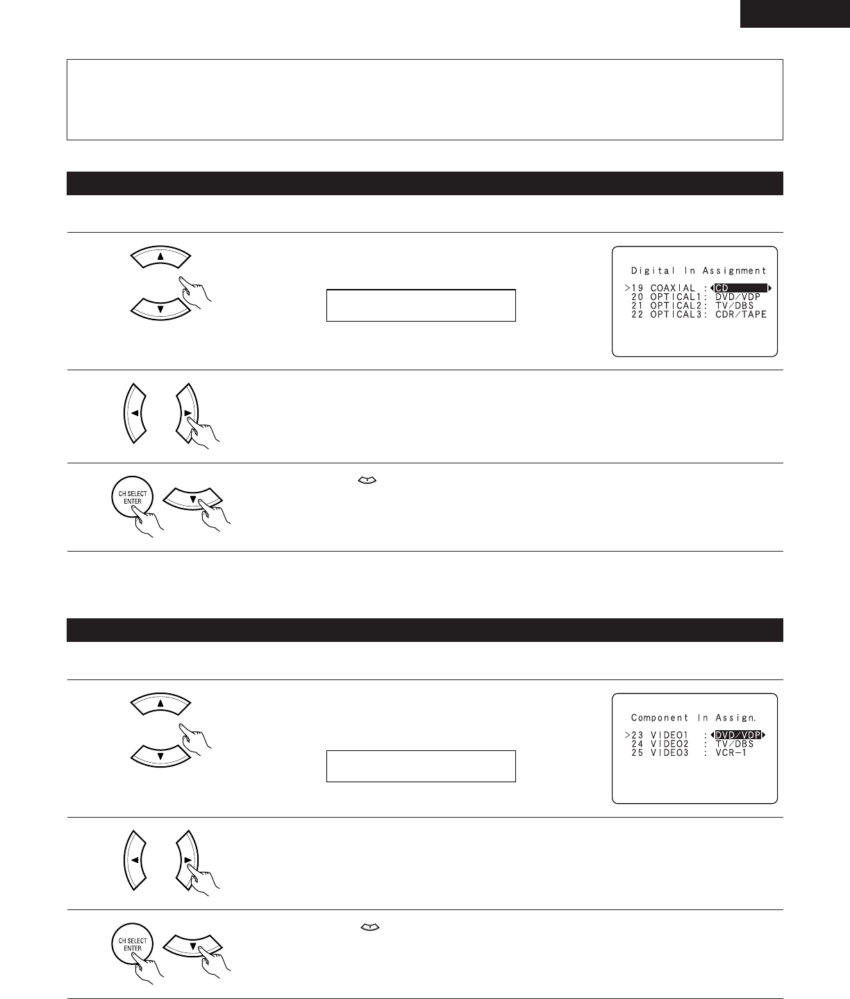 • This setting assigns the digital input jacks of the AVR-2105/885 for the different input sources.