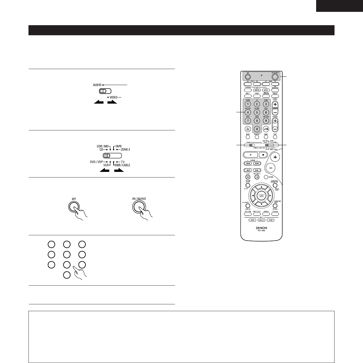 • The signals for the pressed buttons are emitted while setting the preset memory. To avoid accidental operation, cover the remote control