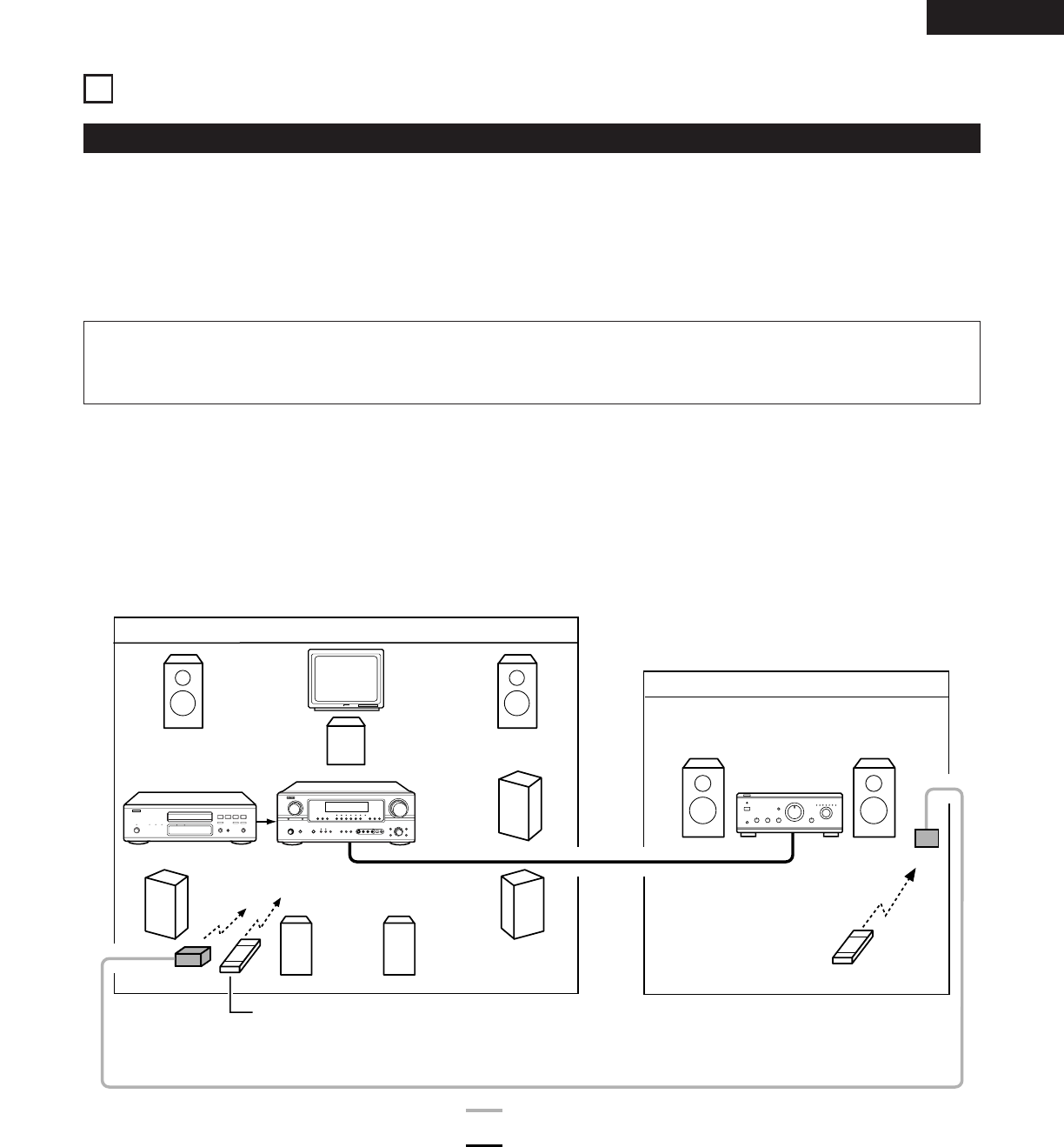 can be played in rooms other than the main zone in which this unit and the playback devices are installed. (Refer to ZONE2 on the diagram