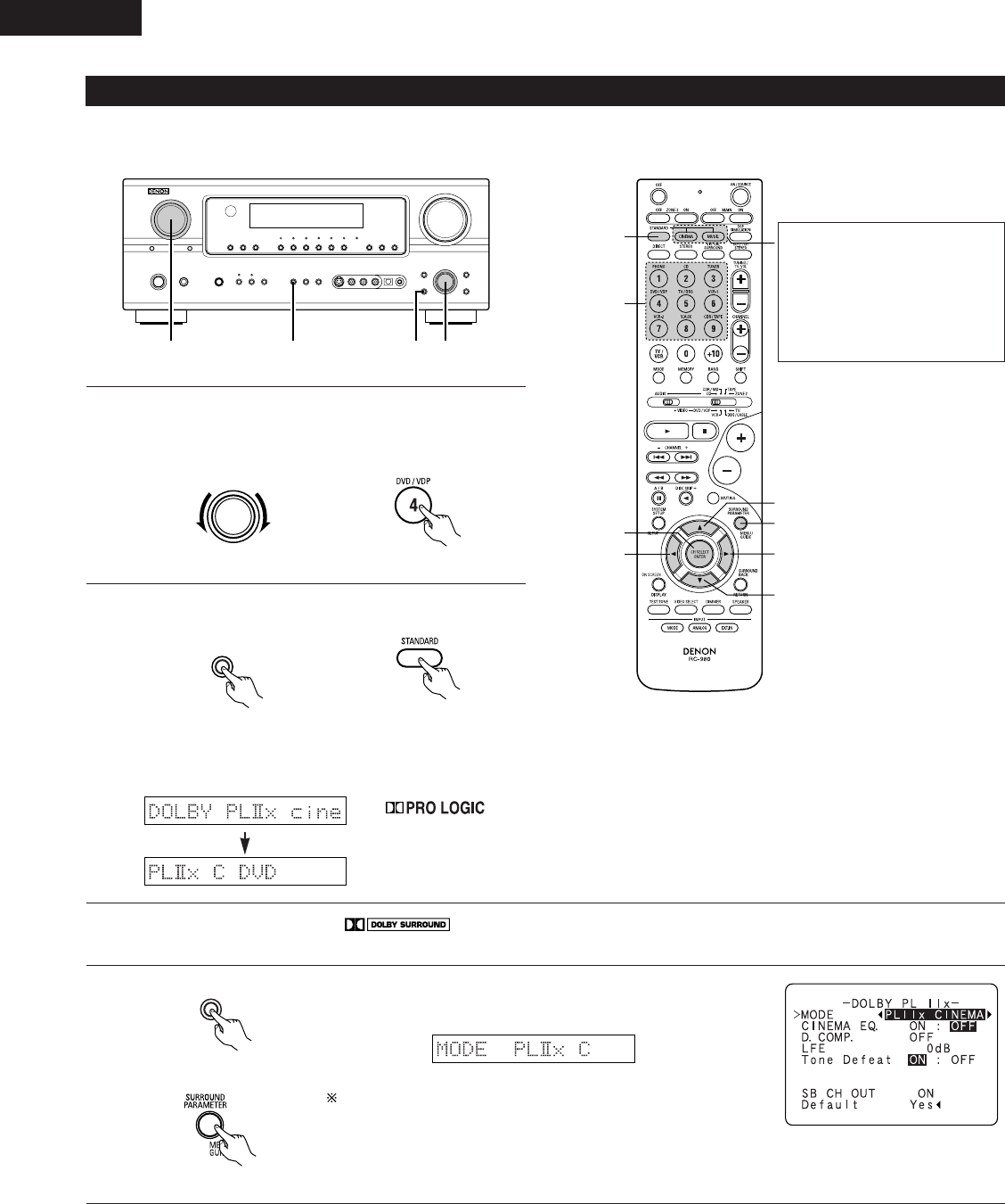 To play in the PL IIx mode, set “S. BackSp” at the Speaker Configuration setting to “1Sp” or “2Sp”.