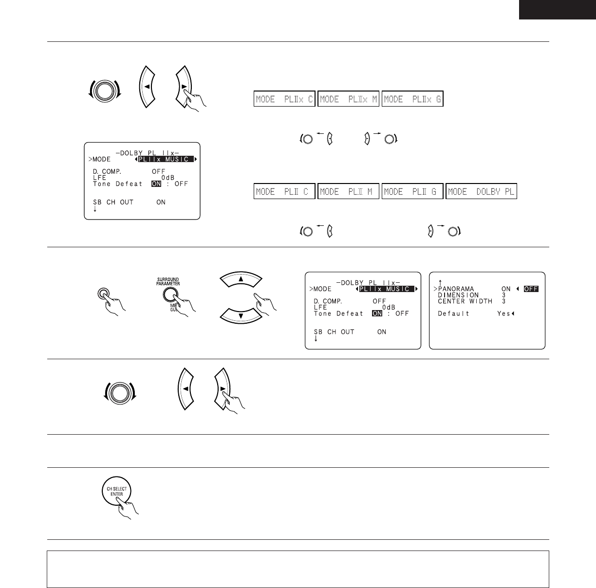 When the surround parameters are set using the buttons on the main unit, stop operating buttons after completing the settings. The
