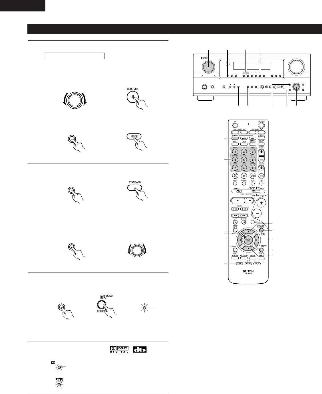 Dolby Digital mode (only with digital input) and DTS Surround (only with digital input)