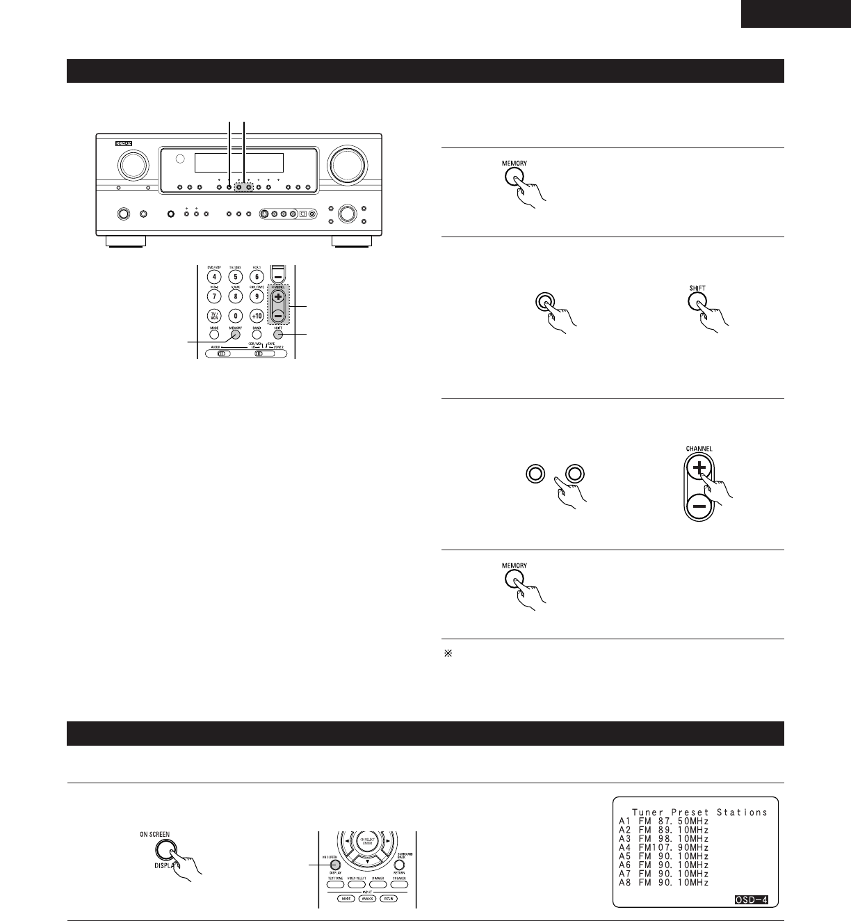 Press the ON SCREEN/DISPLAY button repeatedly until the “Tuner Preset Stations” screen
