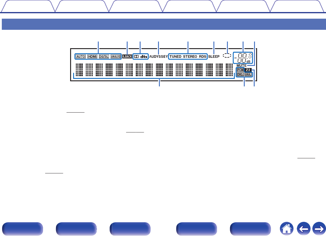 Deze indicators lichten op wanneer de ingangsbron is ingesteld op