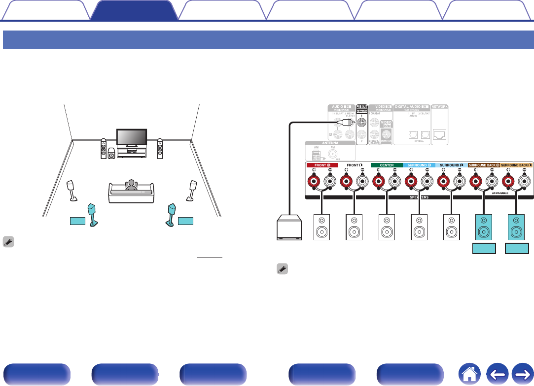 Voorbeeldaansluitingen wanneer u luidsprekers surround achter gebruikt