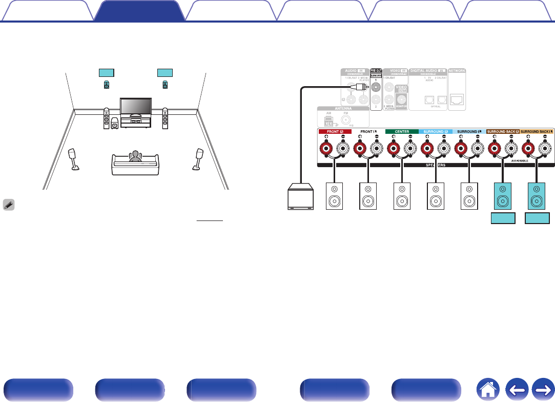 Voorbeeldaansluitingen wanneer u de voorluidsprekers hoog gebruikt
