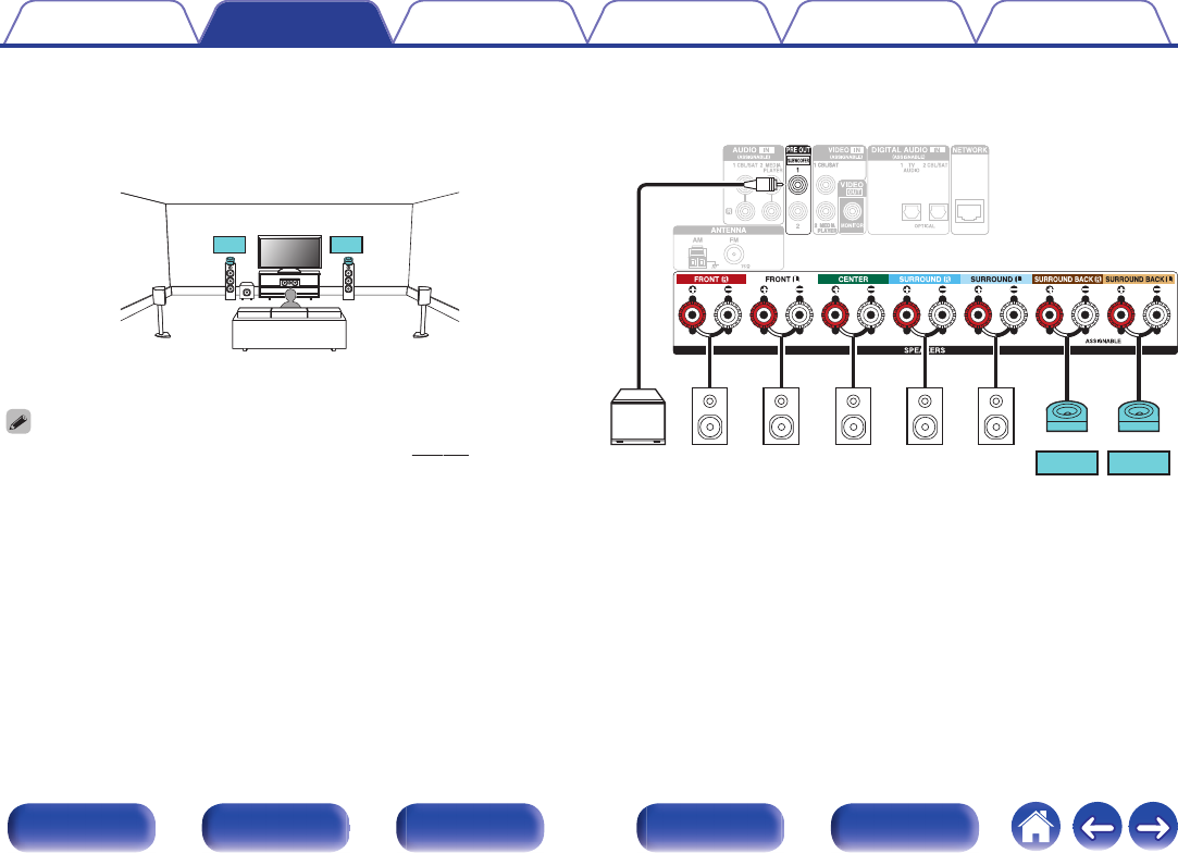 Voorbeeldaansluitingen wanneer u de voorluidsprekers Dolby Atmos Enabled gebruikt
